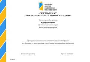 Освітню програму «Курортна справа» (магістерського) рівня — акредитовано